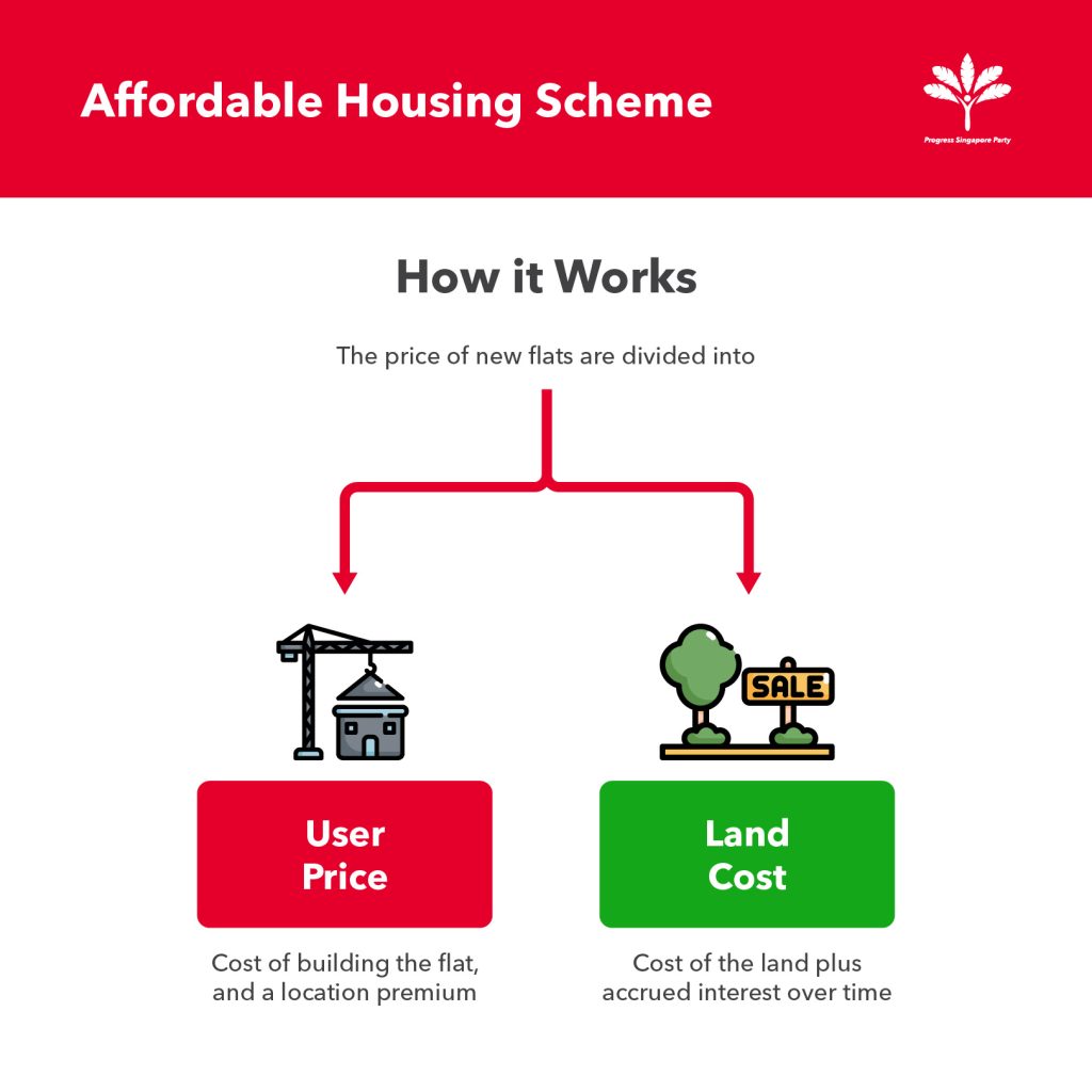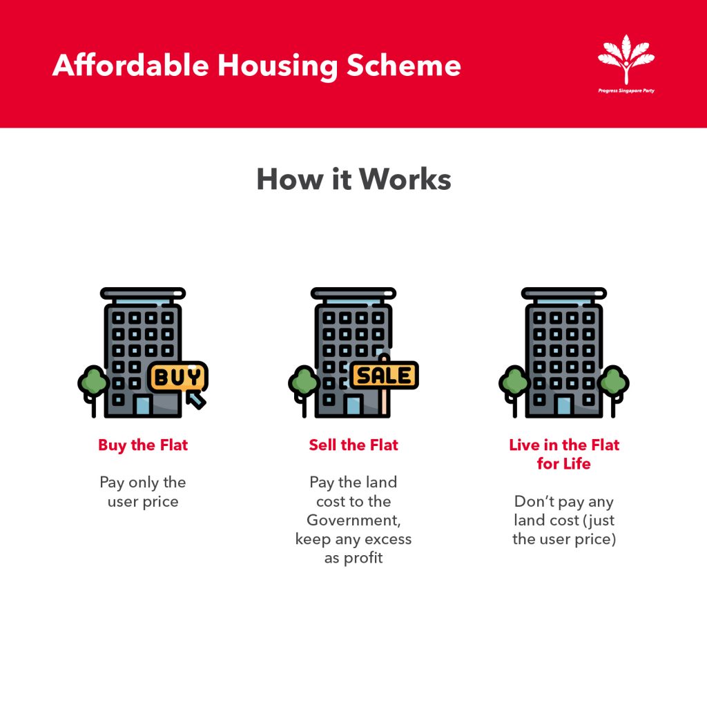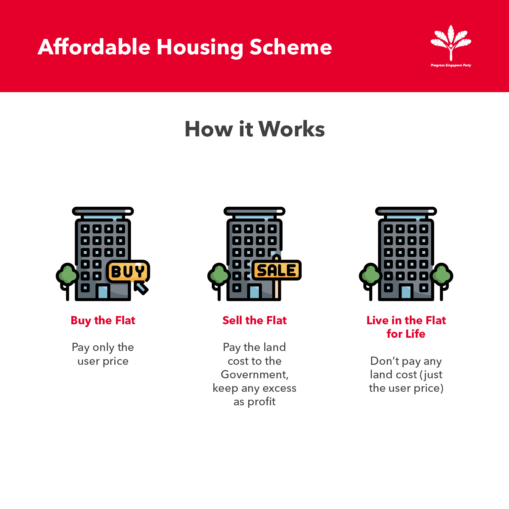 (1) The Affordable Homes Scheme, which proposes that flat buyers do not have to pay land cost when they buy a new flat from HDB. Instead, payment of the land cost will be deferred and paid only if the flat is sold after the Minimum Occupation Period. This means that flat buyers who buy flats solely for owner-occupation will not have to pay land cost, which will greatly lower the cost of housing for such buyers.
